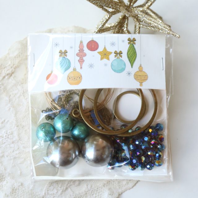 丸カンやTピン、オーナメントを吊す紐までセットしてありますので、工具だけあればすぐに制作できます。