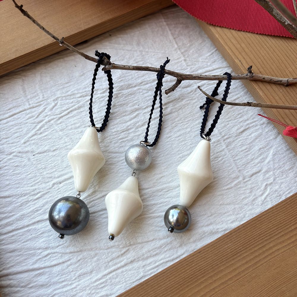丸カンやTピン、オーナメントを吊す紐までセットしてありますので、工具だけあればすぐに制作できます。