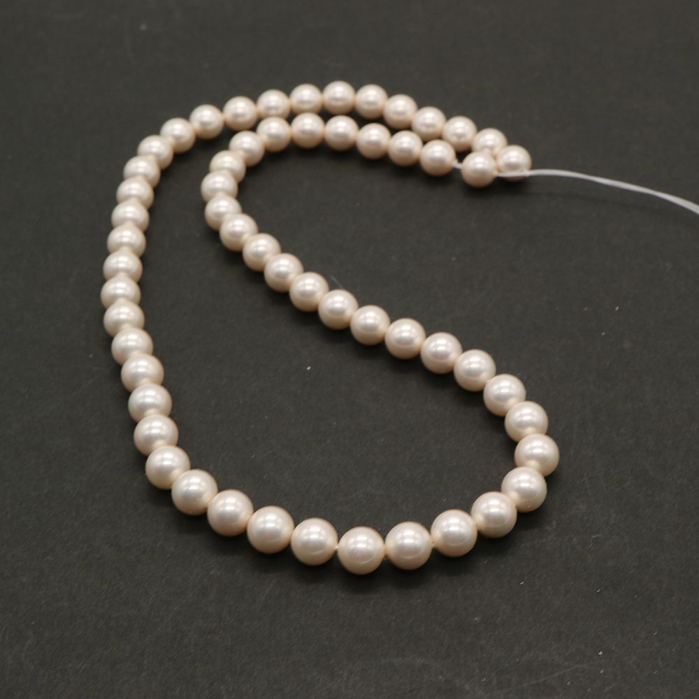 【さくら祭】チェリーブランドビーズ:貝パールミガキ半製品 ラウンド ホワイト約7mm(1本約39cm)