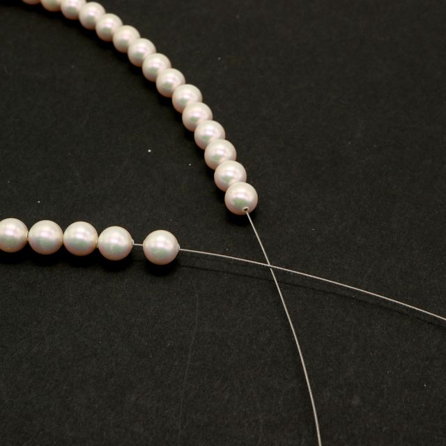 ナイロンコートワイヤーに通った状態でのお届けですので、このまま金具を取り付けてネックレスに加工できます。