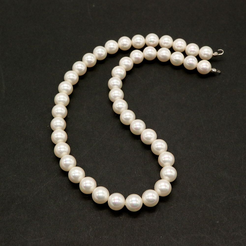 【さくら祭】チェリーブランドビーズ:貝パールミガキ半製品 ラウンド ホワイト約9mm(1本約39.5cm)