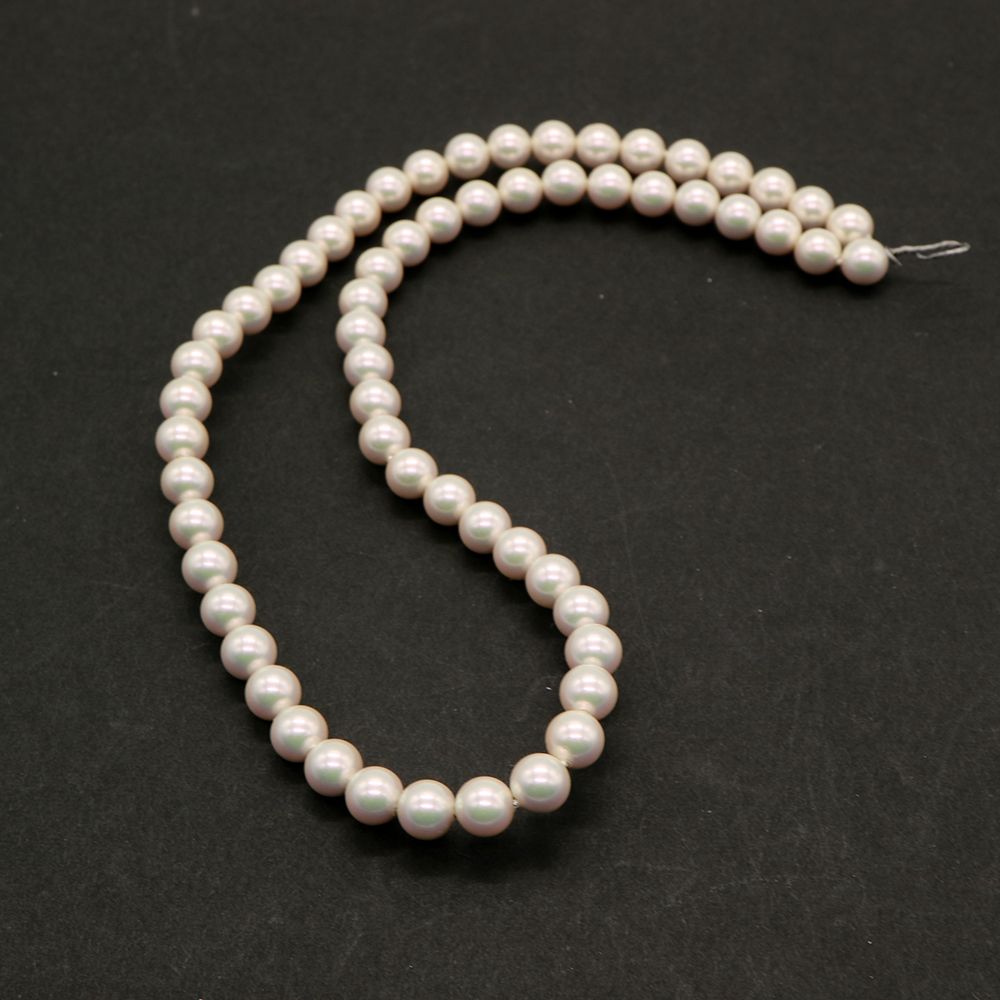 【さくら祭】チェリーブランドビーズ:貝パール ラウンド ホワイト約6.5mm(1本約39cm)