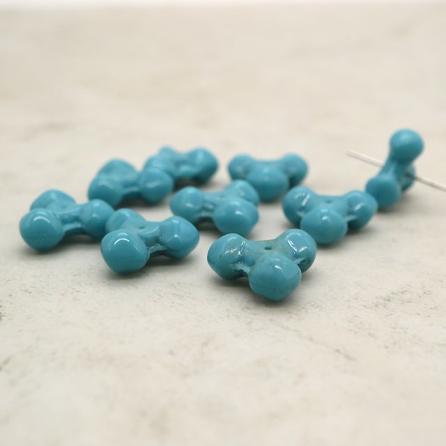 フランスヴィンテージビーズ : 変形 ターコイズブルー 約6x14mm【1個】