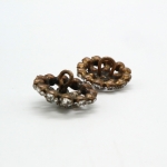 長い年月を経て、金属部分にはアンティーク特有の風合いが現れ、ラインストーンもところどころに味のある曇りが残っています。