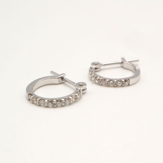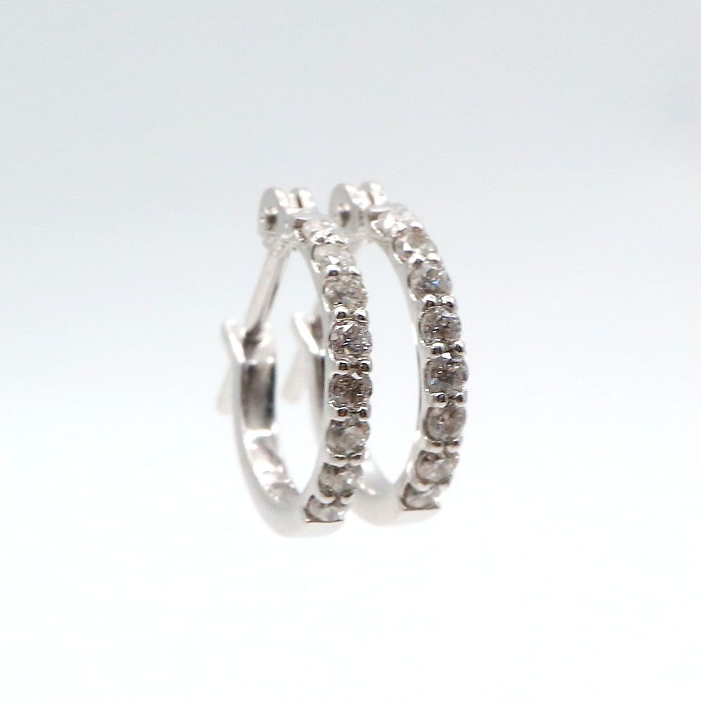 ホワイトゴールドにメレダイヤを7粒埋め込んだリングピアス。