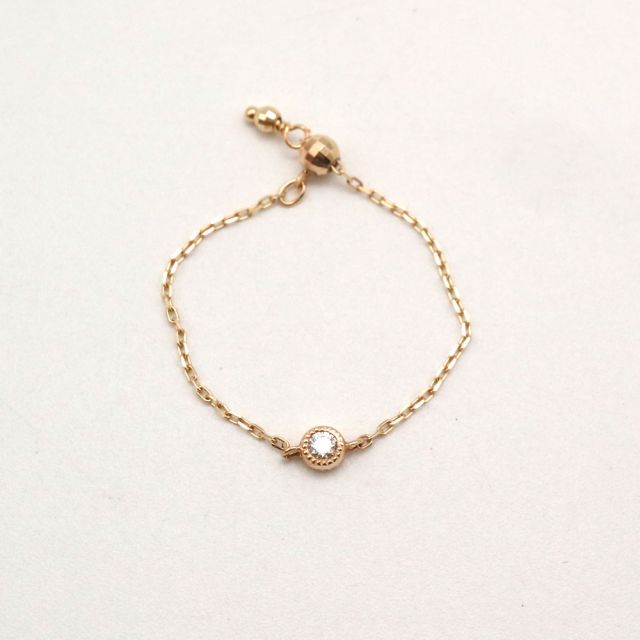 ひと粒ダイヤが凛と輝く、繊細なチェーンリング。