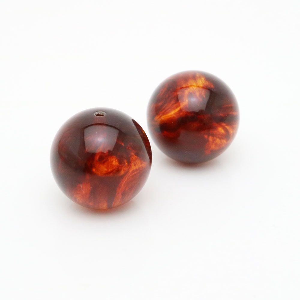 ドイツヴィンテージビーズ アクリル ラウンドべっ甲ダークブラウン14mm【2個】