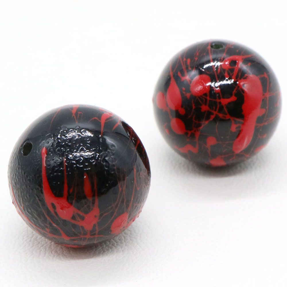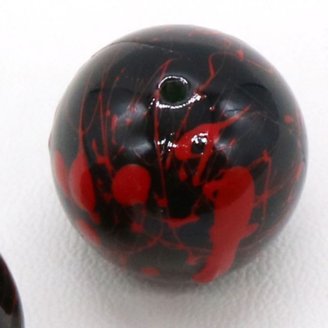 アクリルビーズ:ラウンド ブラック&レッド約15.5mm【1個】