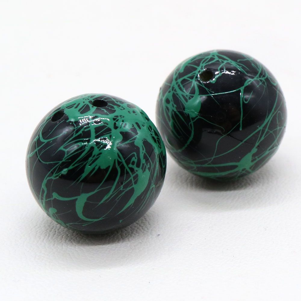 アクリルビーズ:ラウンド ブラック&グリーン約15.5mm【1個】