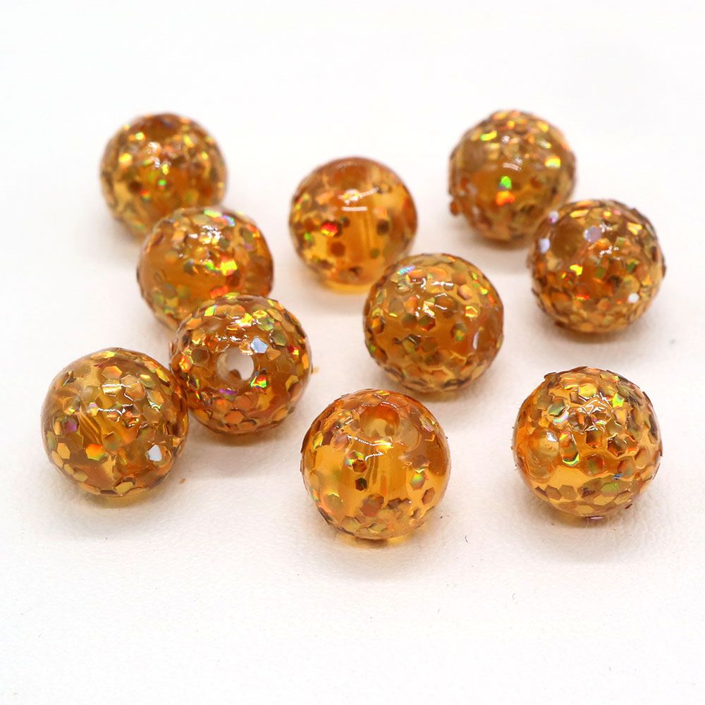 チェリーブランドアクリルビーズ:カットラウンド オレンジラメ約8.5mm【10個】