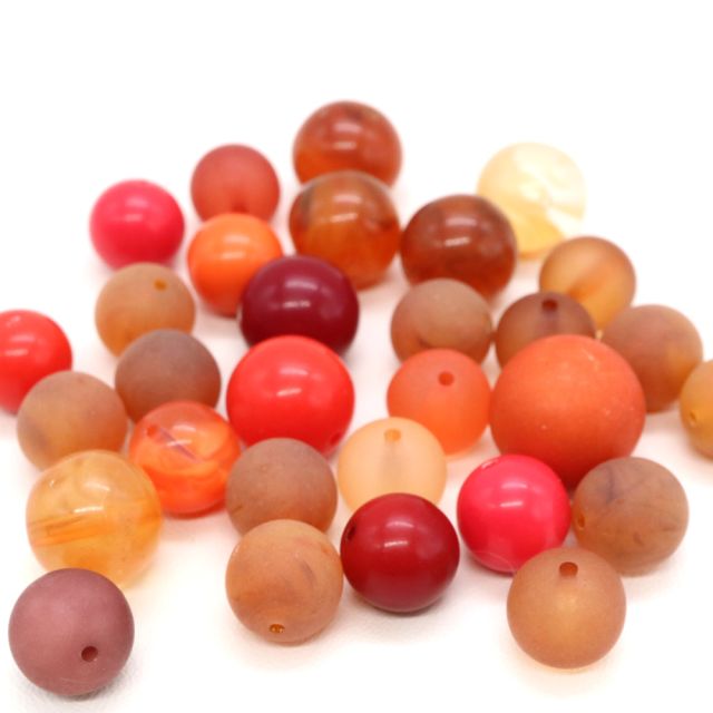 チェリーブランドビーズ:アクリルラウンド オレンジMIX約10-12mm【20g】