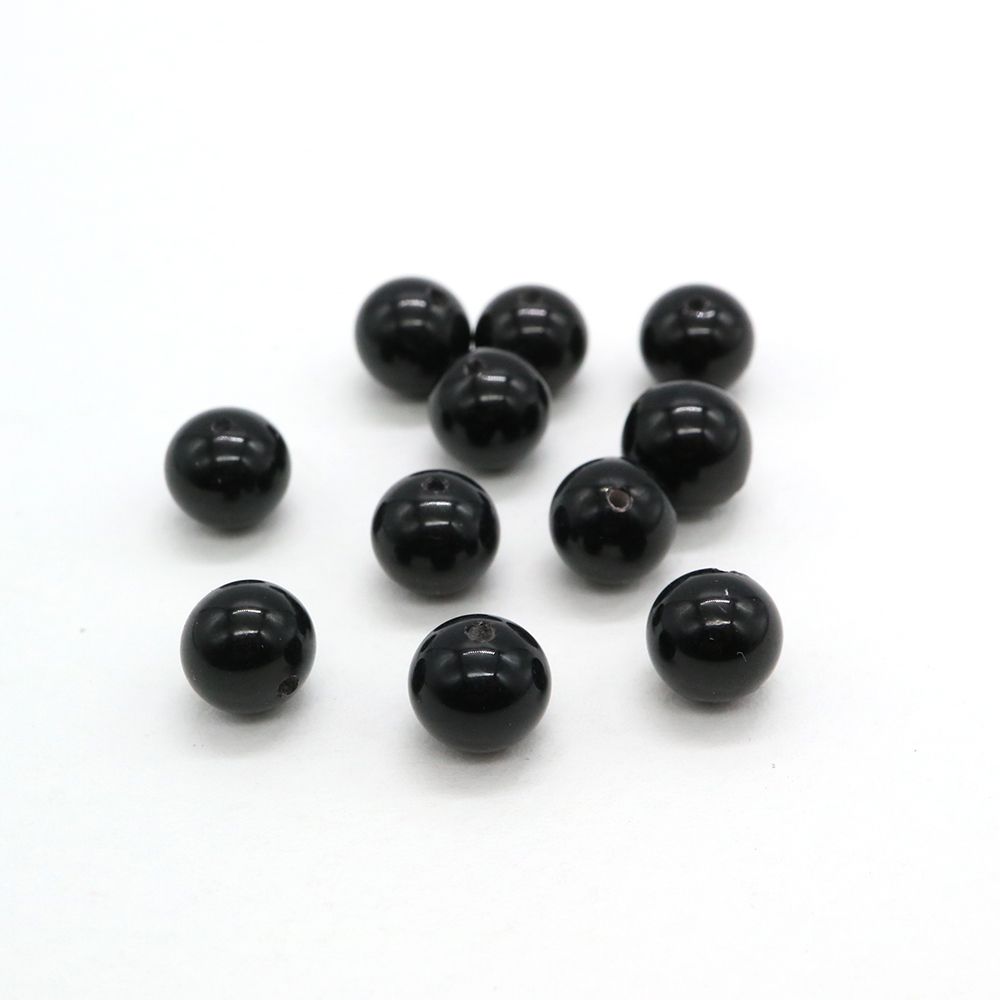 【さくら祭】チェリーブランドガラスビーズ:ラウンド ブラック約7-8mm【10個】