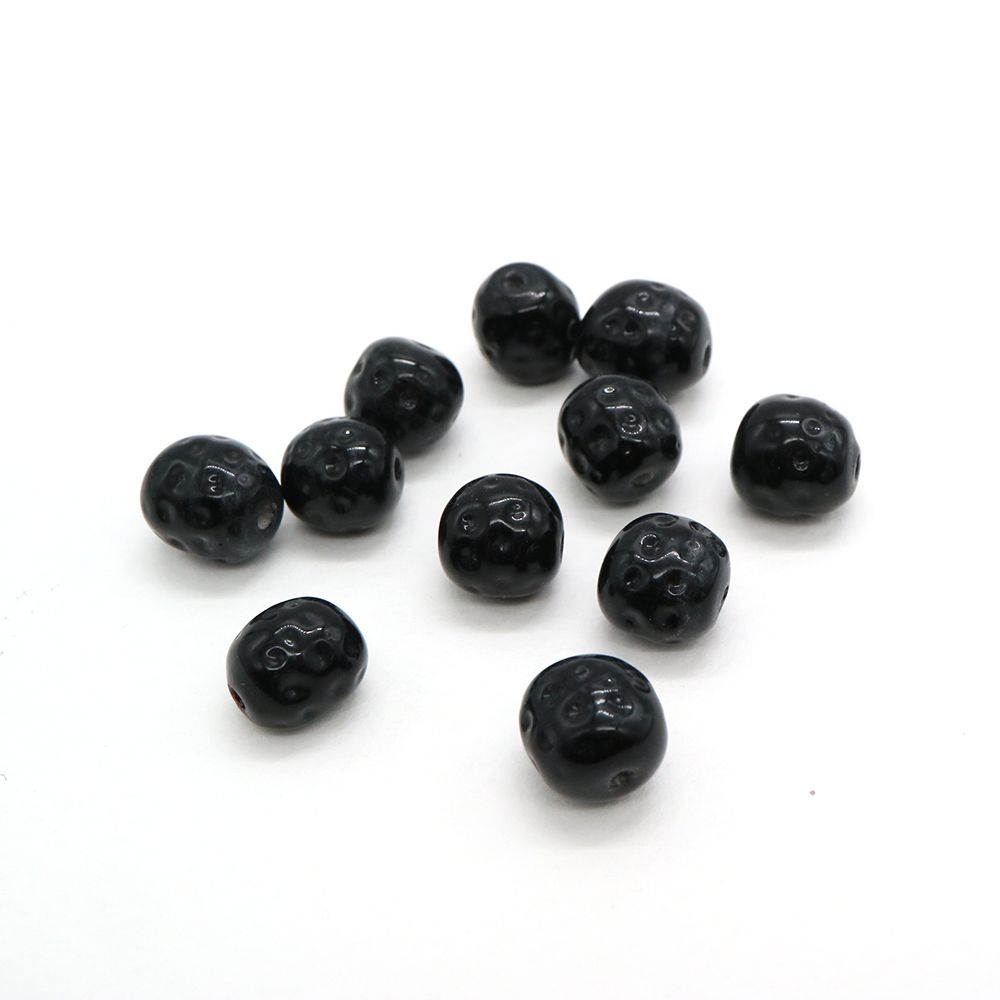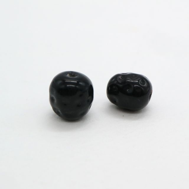 【さくら祭】チェリーブランドガラスビーズ: 俵型 ドットブラック約9-10x10-11mm【2個】