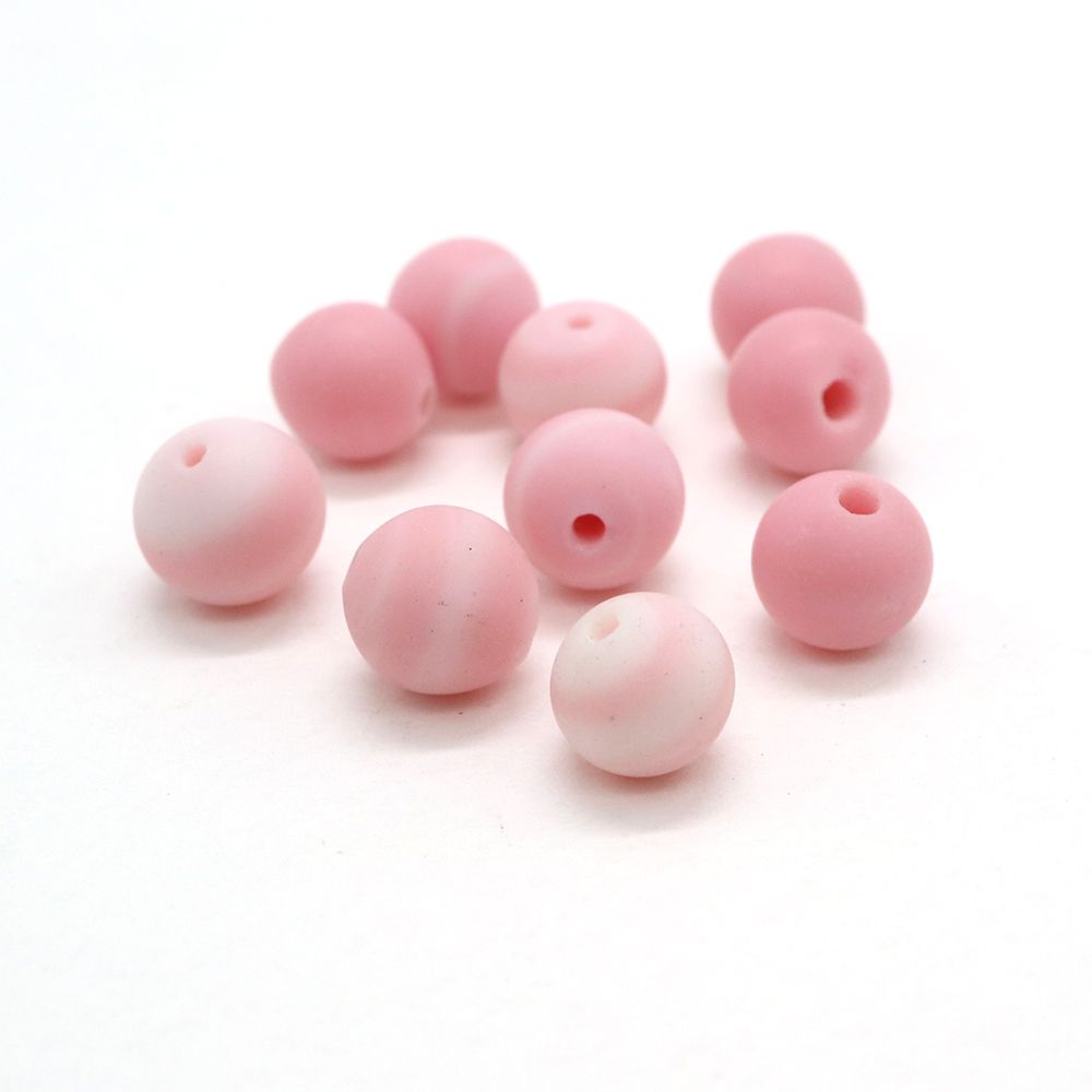 【さくら祭】チェリーブランドビーズ:ラウンド マーブルマットピンク約7-8mm【10個】