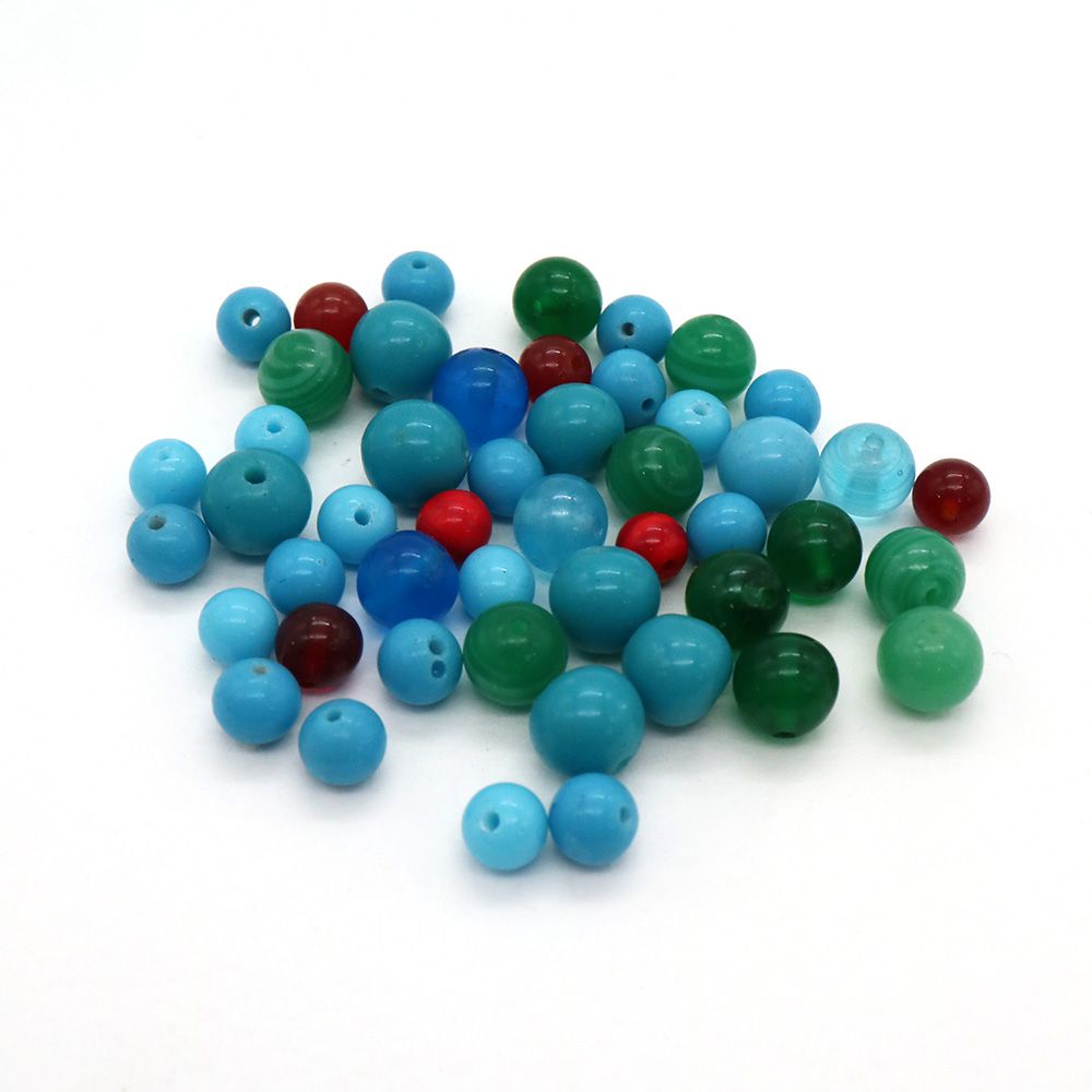 チェリーブランドガラスビーズ:ラウンド ブルーMIX約5-8mm【25g】