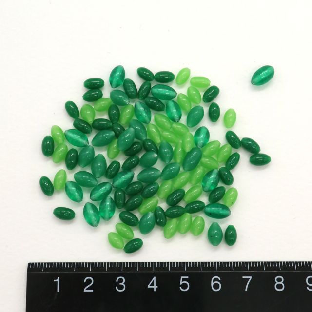 チェリーブランドガラスビーズ:ナツメ グリーンMIX約6-8.5mm【20g】
