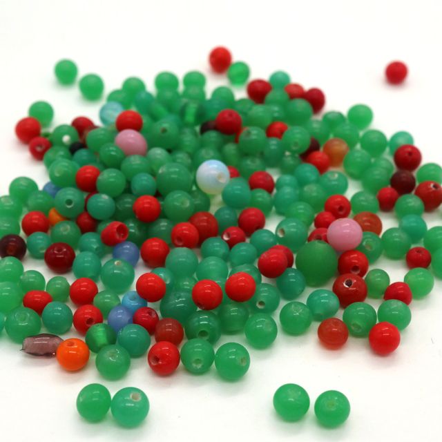 チェリーブランドガラスビーズ:ラウンド グリーン系MIX約4-5mm【20g】