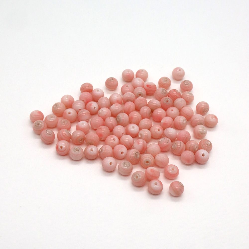 ガラスラウンド マーブルピンク約6mm【25g】約87個