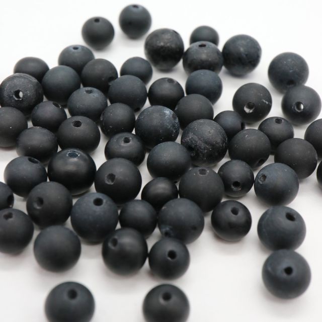 チェリーブランドビーズ:ガラス ラウンドマットブラック約5-8mm【25g】