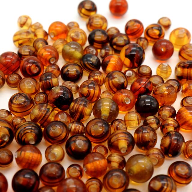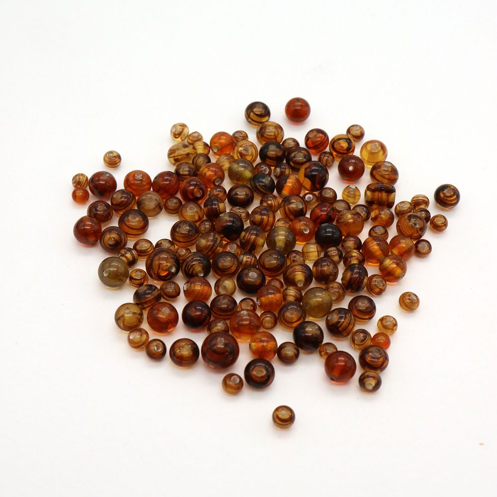 チェリーブランドガラスビーズ:ラウンド ブラウン約6-8mm【25g】