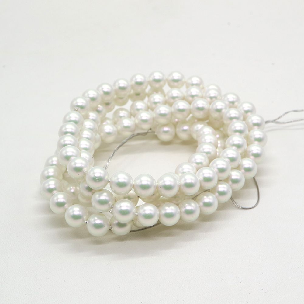 チェリーブランドビーズ:ガラスラウンドパール ホワイト約7mm(1/2本約39cm)