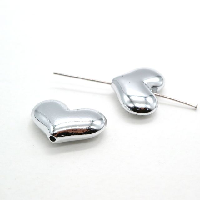 アクリルビーズ:ハート シルバー約22x16mm【1個】