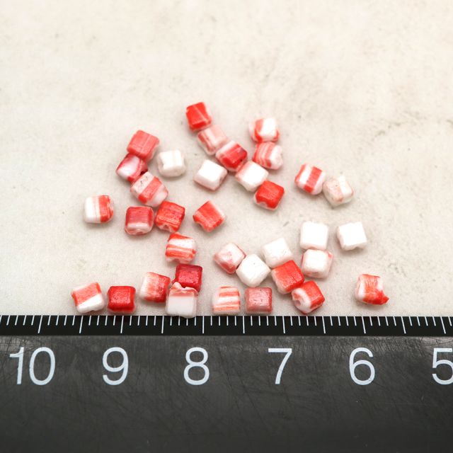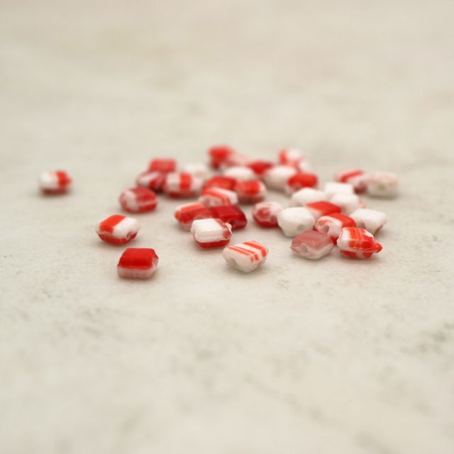 フランスヴィンテージビーズ スクエア ホワイト/オレンジ 約3x3mm【20個】