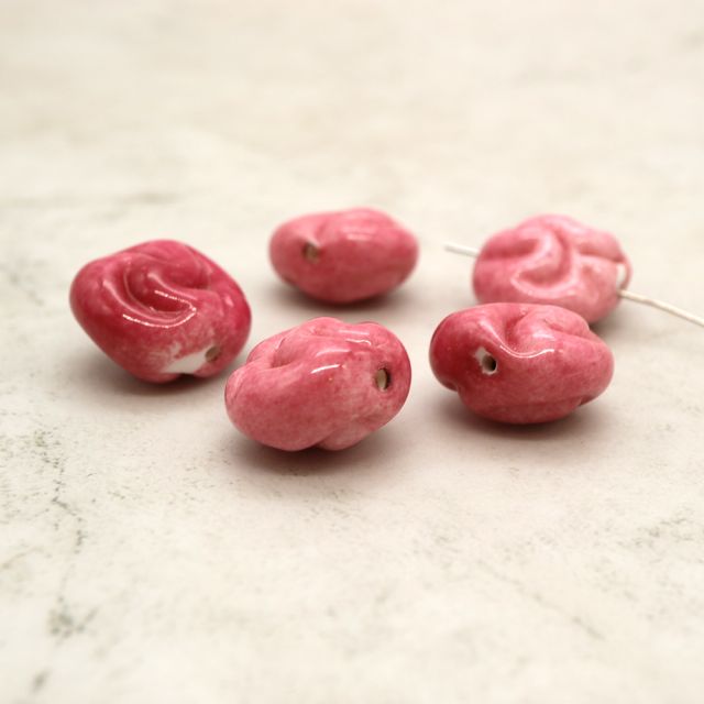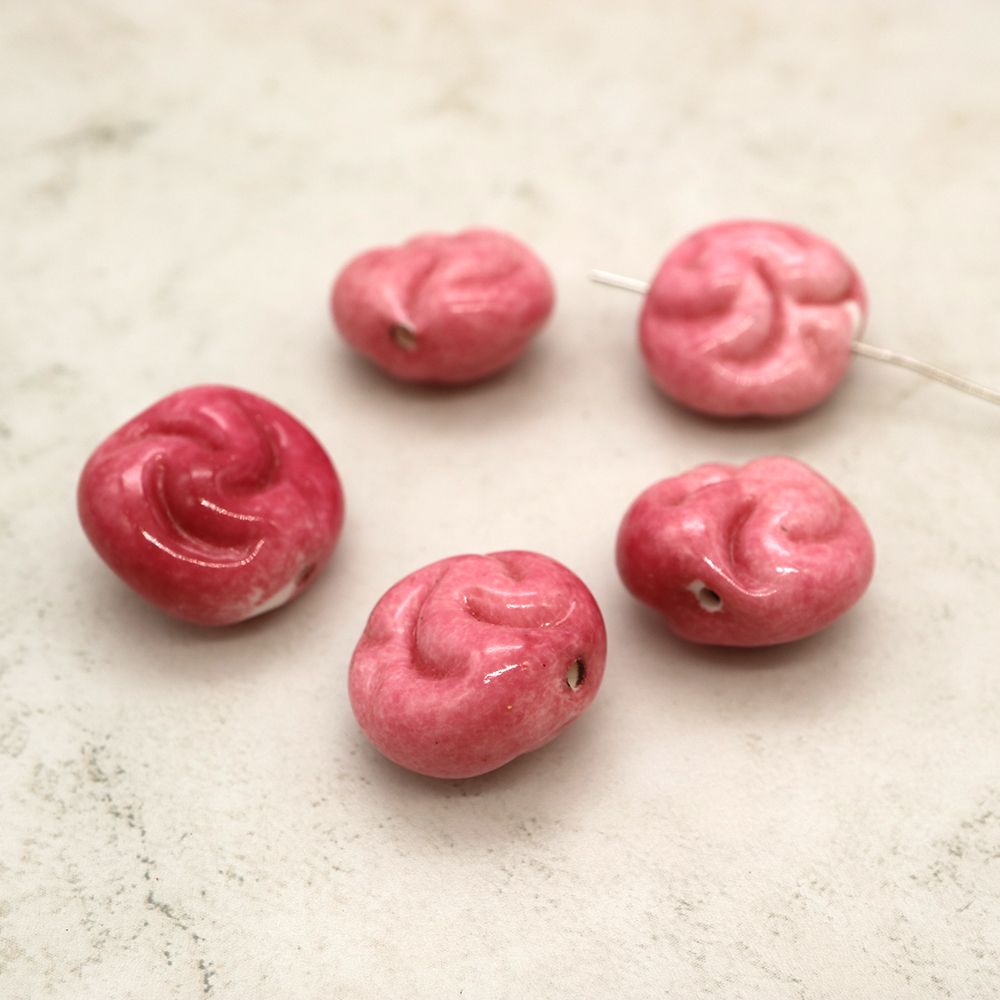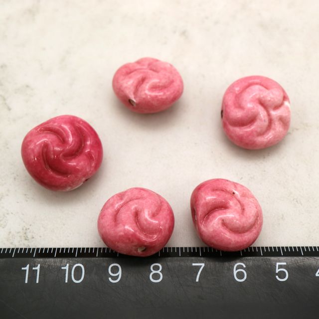 フランスヴィンテージビーズ 変形フラットラウンド ピンク 約18x20mm【1個】