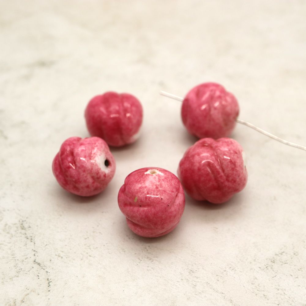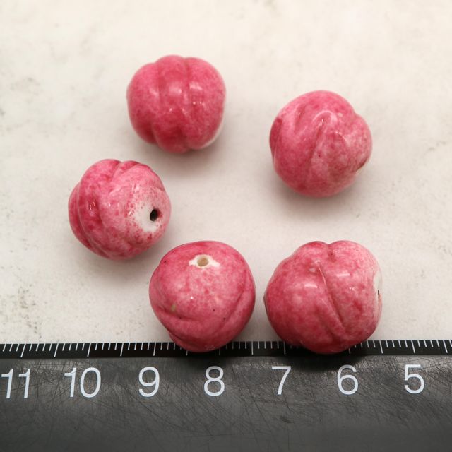 フランスヴィンテージビーズ 変形ラウンド ピンク 約18x16mm【1個】