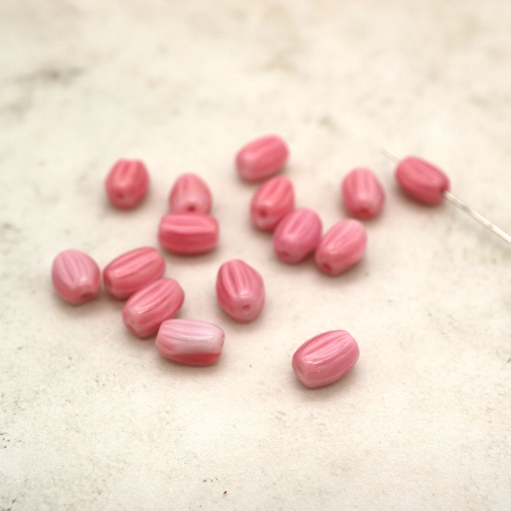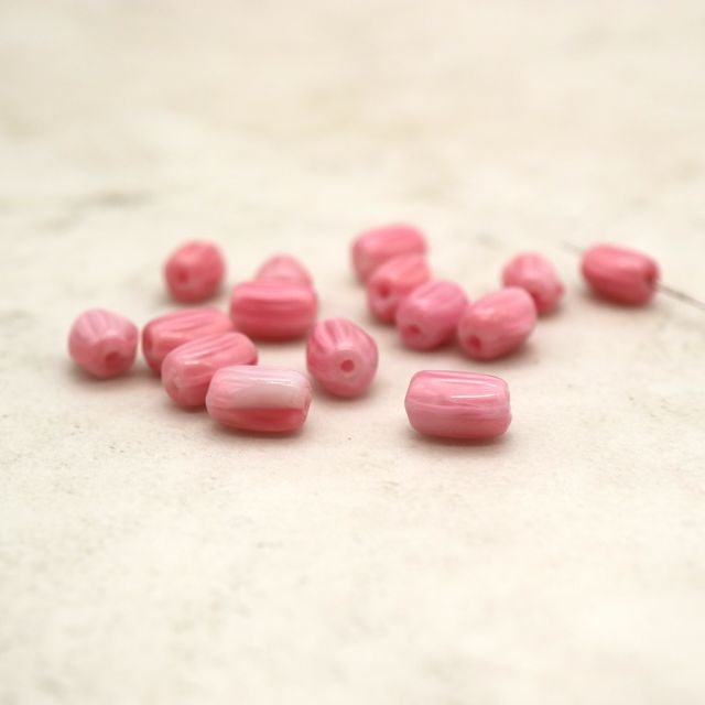 フランスヴィンテージビーズ ナツメ ピンク 約7x5mm【6個】