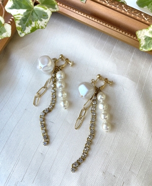 *フランスヴィンテージビーズ :ピラミッド パールカバー ゴールド 8x8mm【3個】*