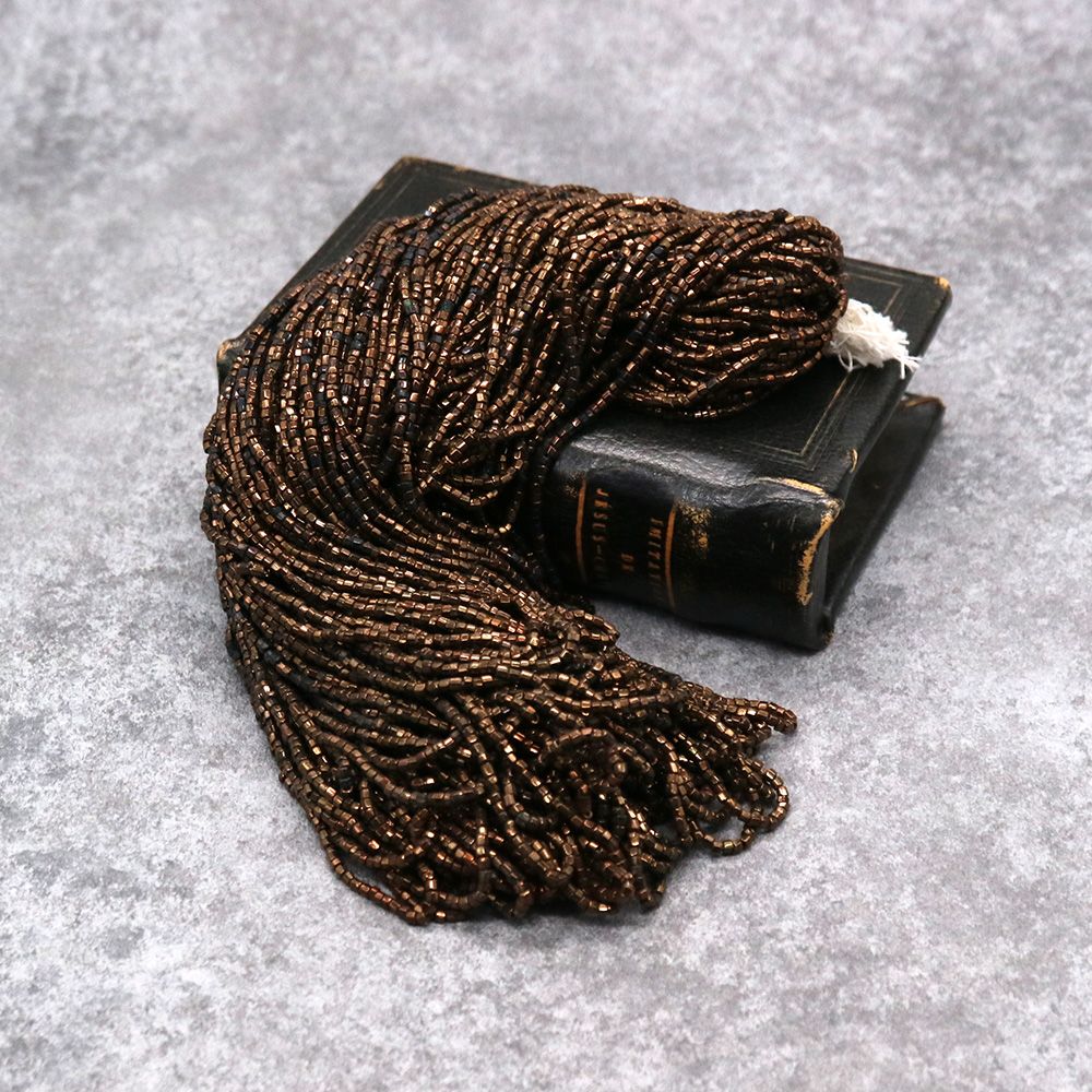 糸通しフランスヴィンテージシードビーズ ダークブロンズ【長さ約40cm】