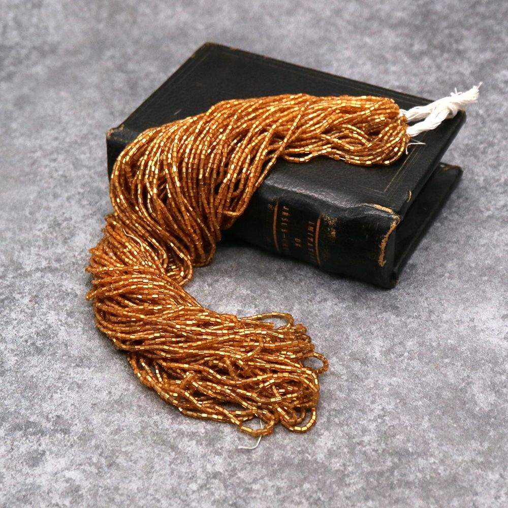 糸通しフランスヴィンテージ シードビーズ 竹 ゴールドシルバーライン 約1.5x1mm【長さ約50cm】