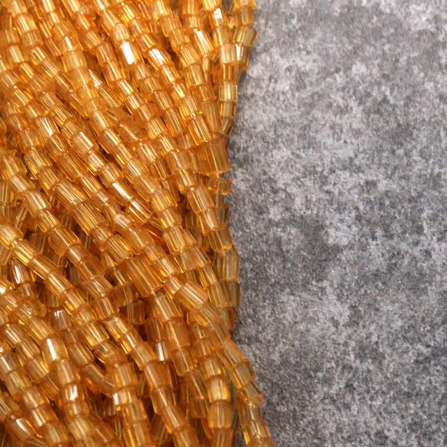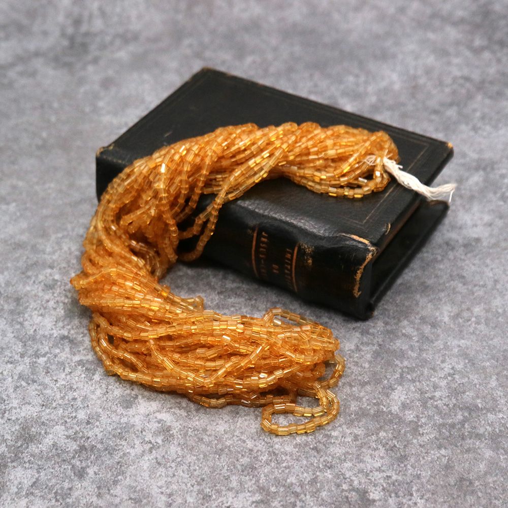 糸通しフランスヴィンテージシードビーズ クリスタルイエロー【長さ約50cm】約2x2.5mm