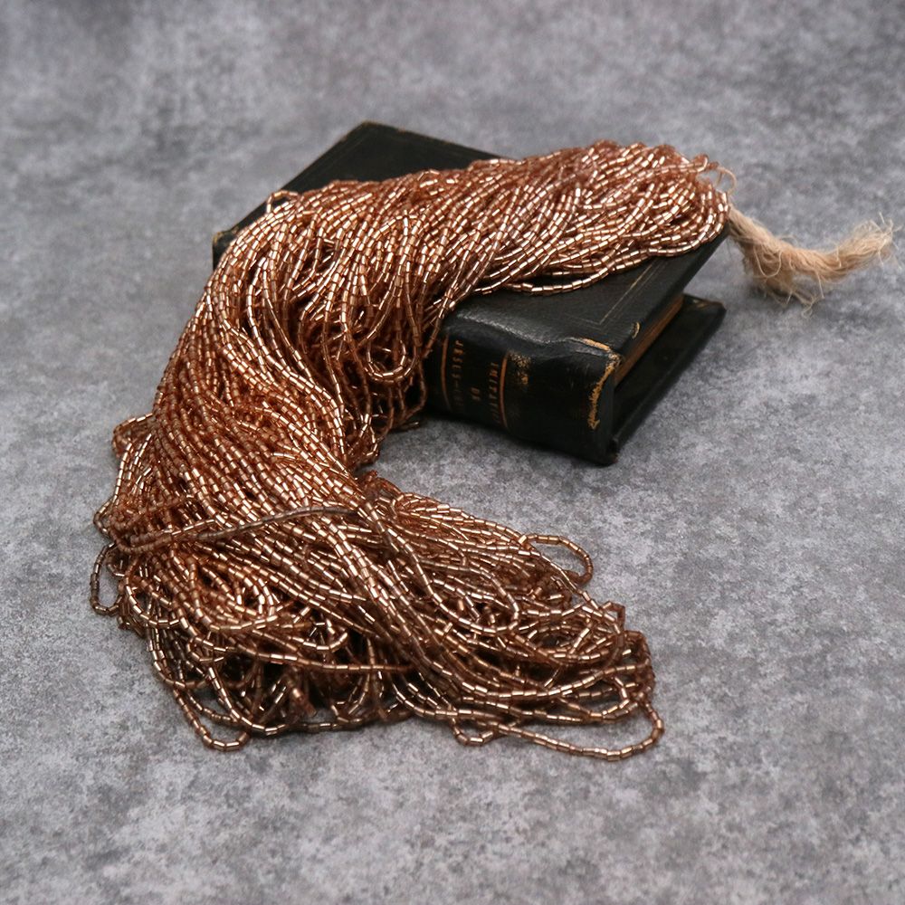 糸通しフランスヴィンテージシードビーズ クリスタルブラウン【長さ約60cm】