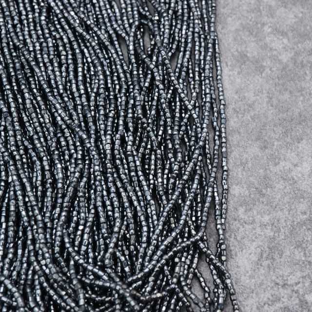 糸通しフランスヴィンテージシードビーズ ヘマタイト【長さ約32cm】
