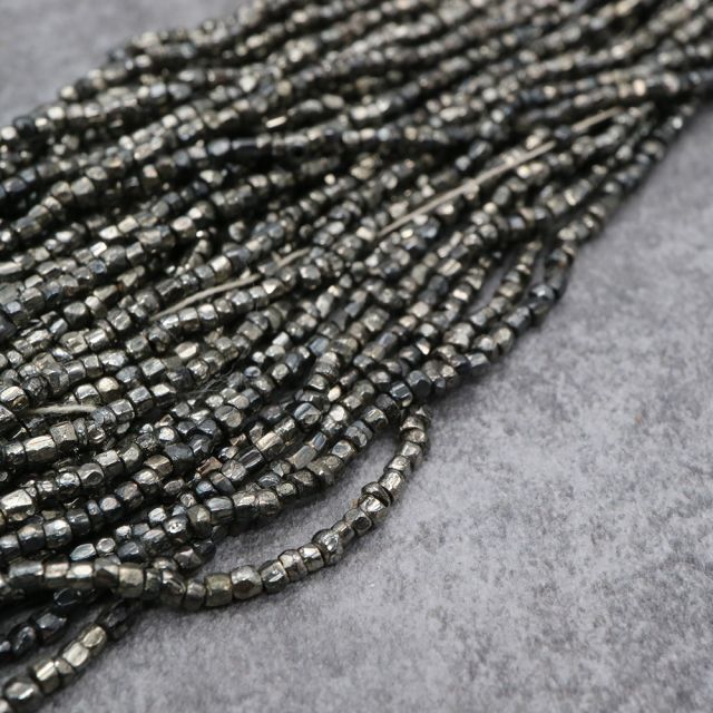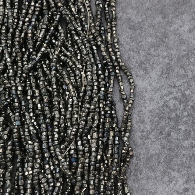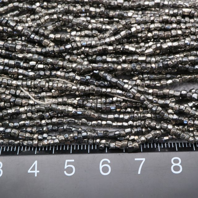 糸通しフランスヴィンテージ シードビーズ カット メタリックシルバー 約2x3mm 【長さ約35cm】
