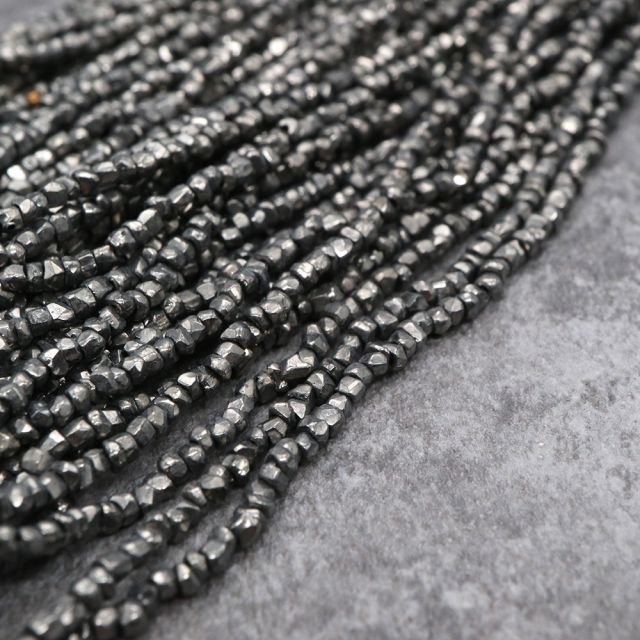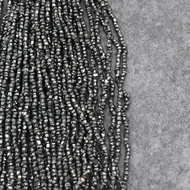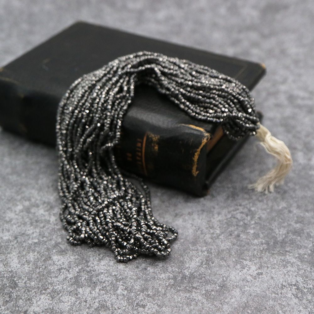 糸通しフランスヴィンテージシードビーズ メタリックブラック【長さ約35cm】
