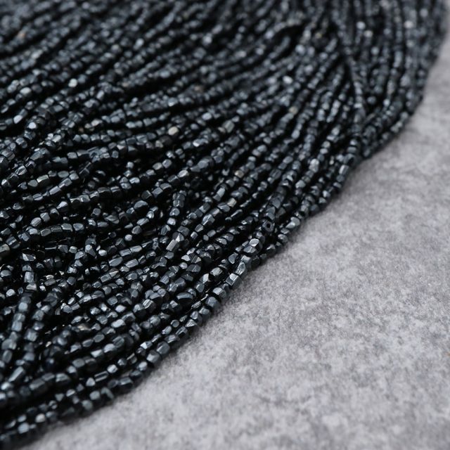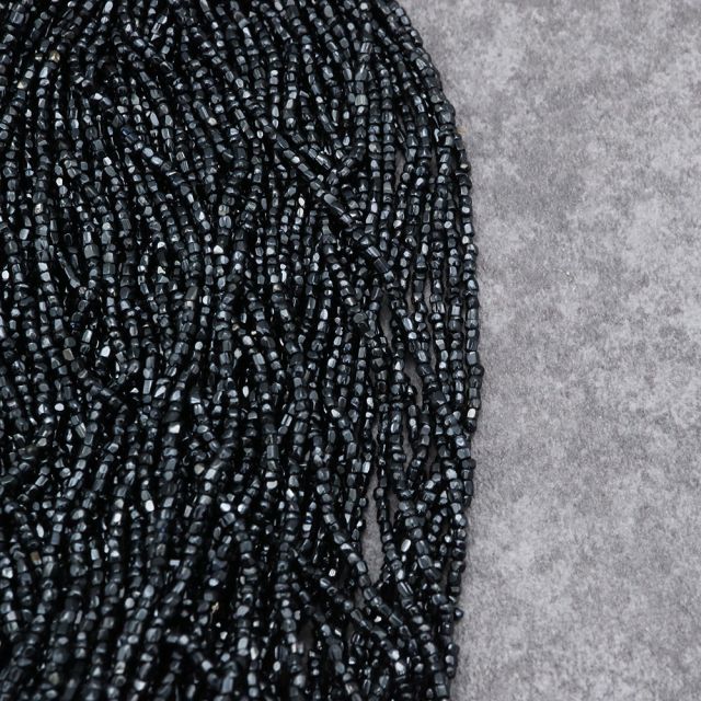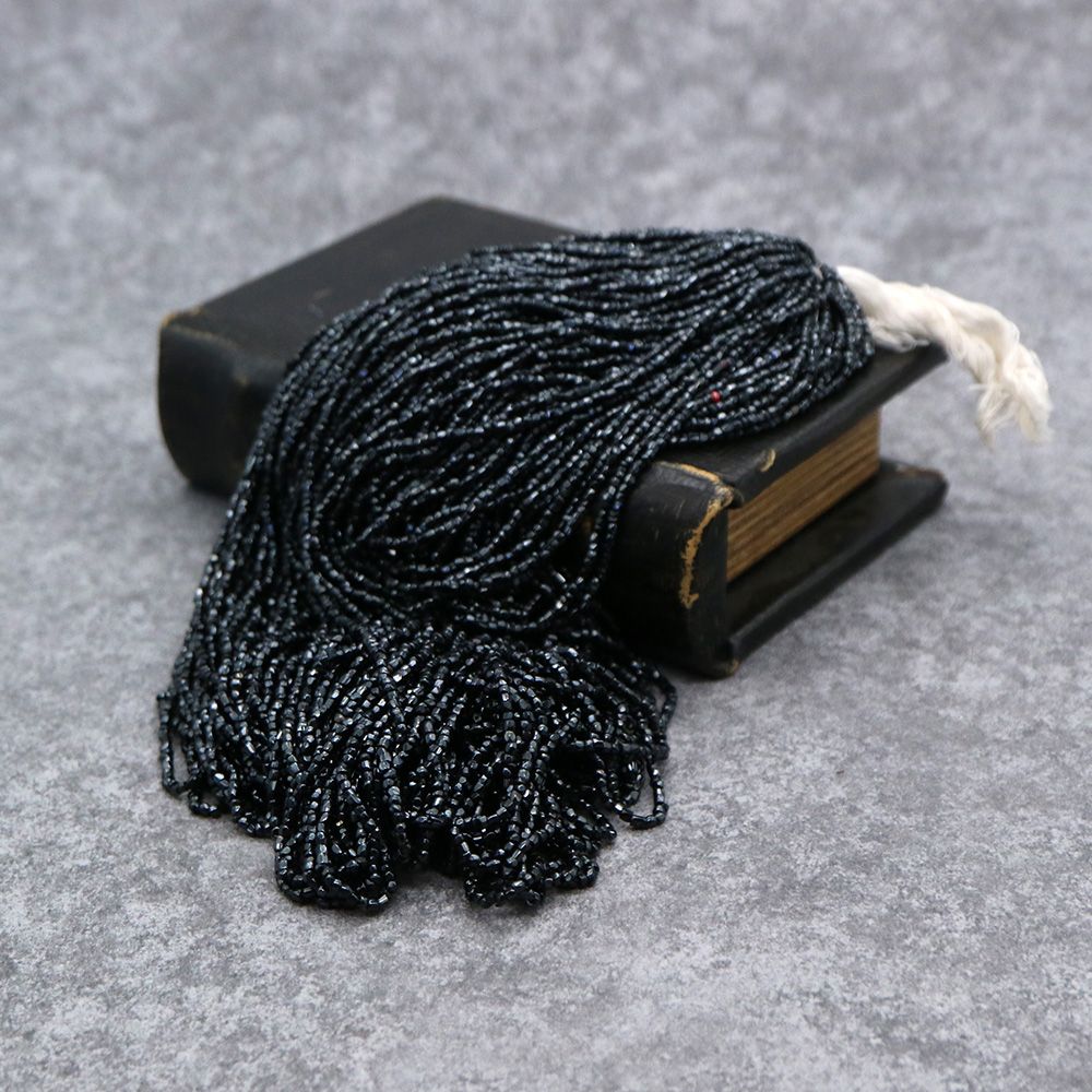 糸通しフランスヴィンテージ シードビーズ カット ブラック 約1x1.5mm 【長さ約32-34cm】