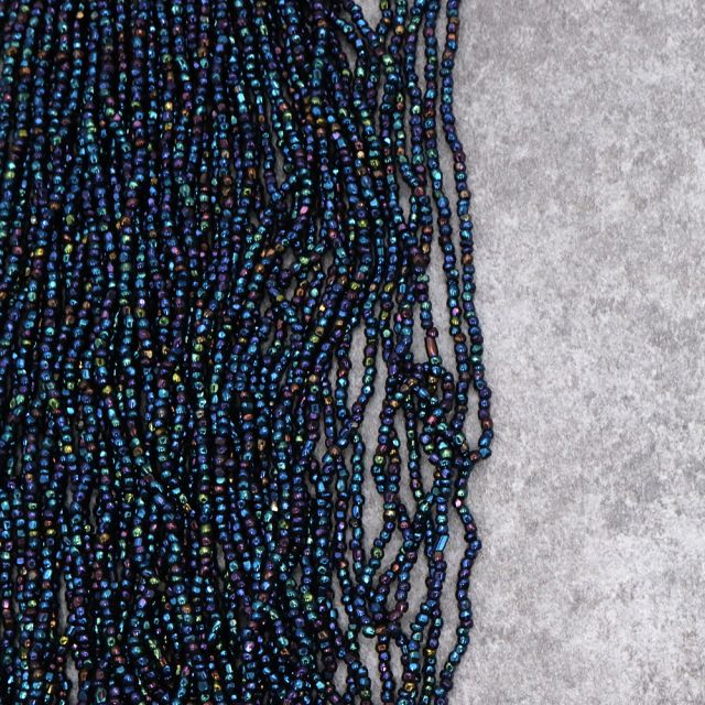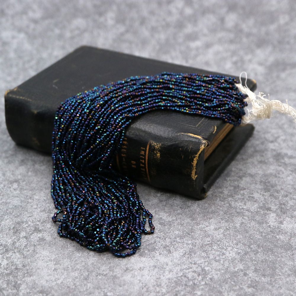 糸通しフランスヴィンテージシードビーズ ブルーアイリス【長さ約34cm】
