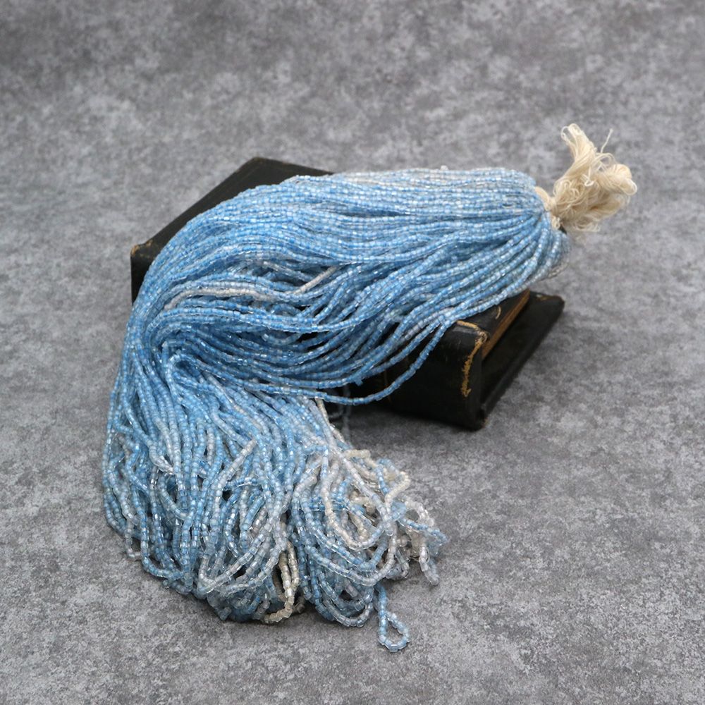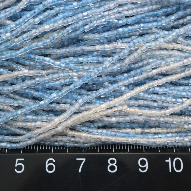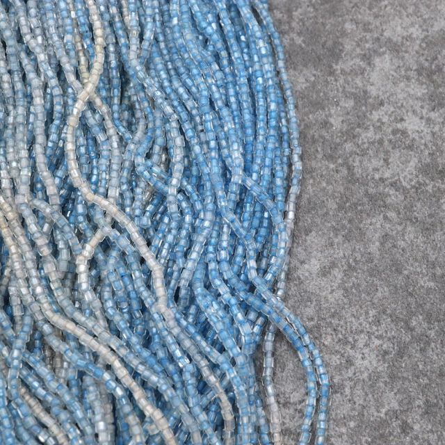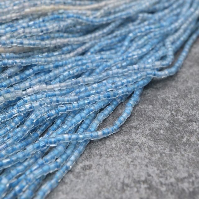 糸通しフランスヴィンテージ シードビーズ 竹 クリスタルブルーライン 約2x2mm 【長さ約42cm】