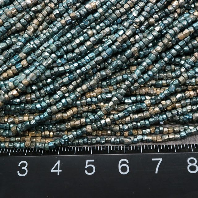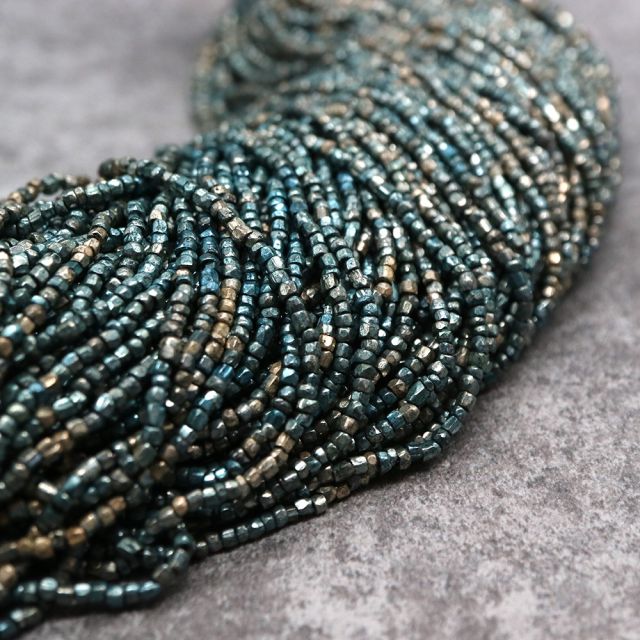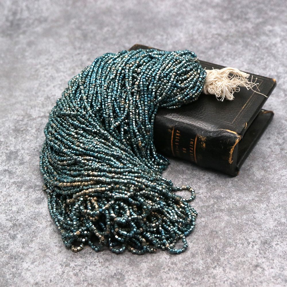 糸通しフランスヴィンテージ シードビーズ カット メタリックブルー 約2x1-2mm 【長さ約44cm】