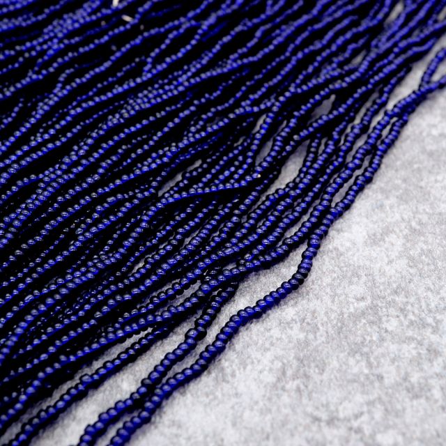 糸通しフランスヴィンテージシードビーズ コバルトブルー【長さ約55cm】