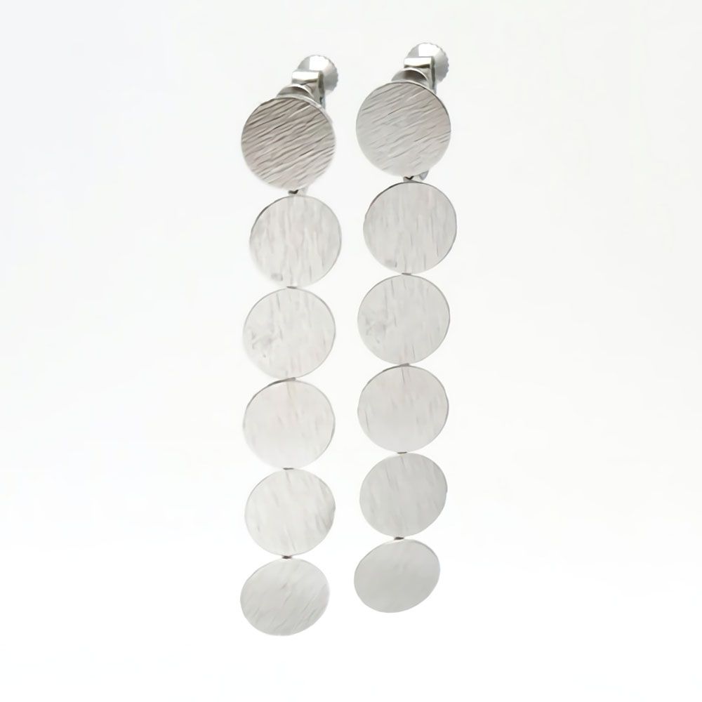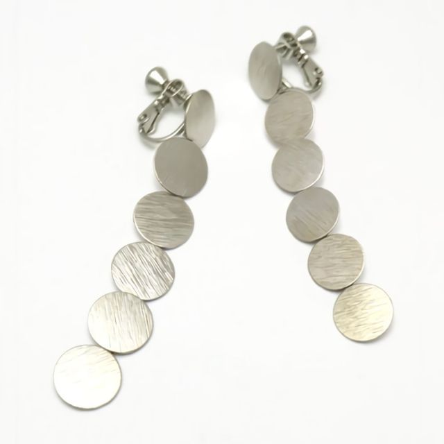 ラウンドプレートが耳元で揺れる、縦長ラインのイヤリング。