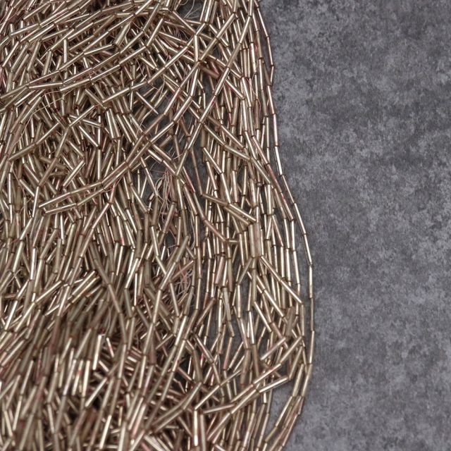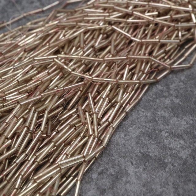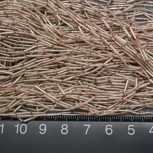 1920〜30年代頃にチェコスロバキアのボヘミア地方で製造されたソーオン・バグルビーズで、当時のフランス市場向けに輸出されたものと推定されます。