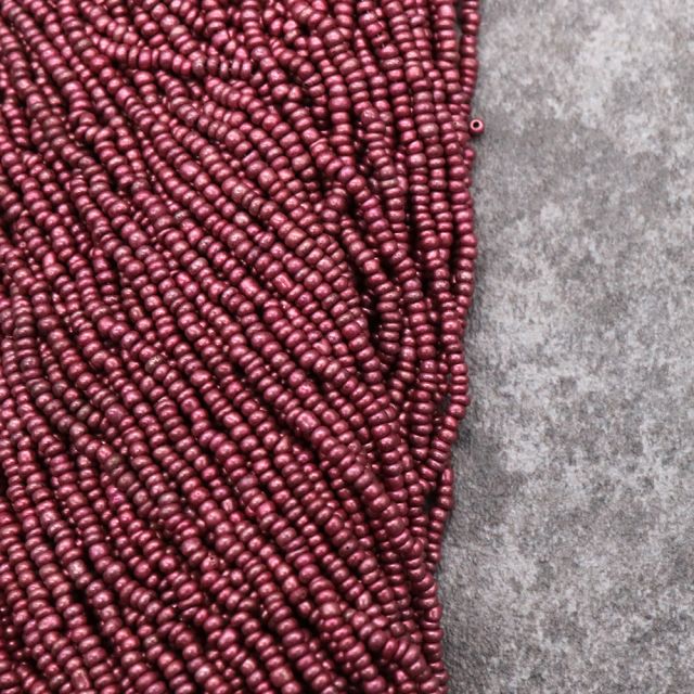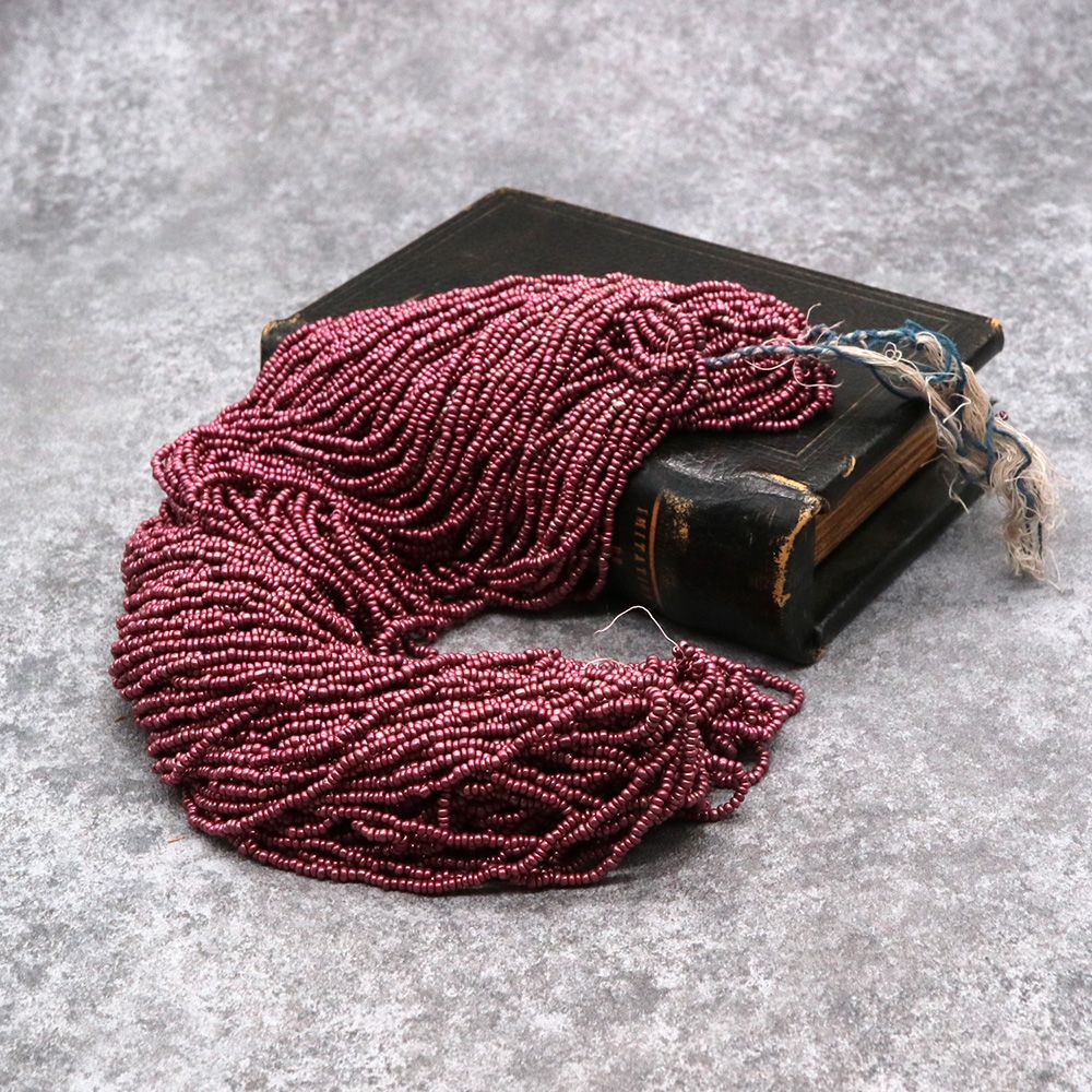 糸通しフランスヴィンテージシードビーズ ブロンズパープルレッド【長さ約58cm】