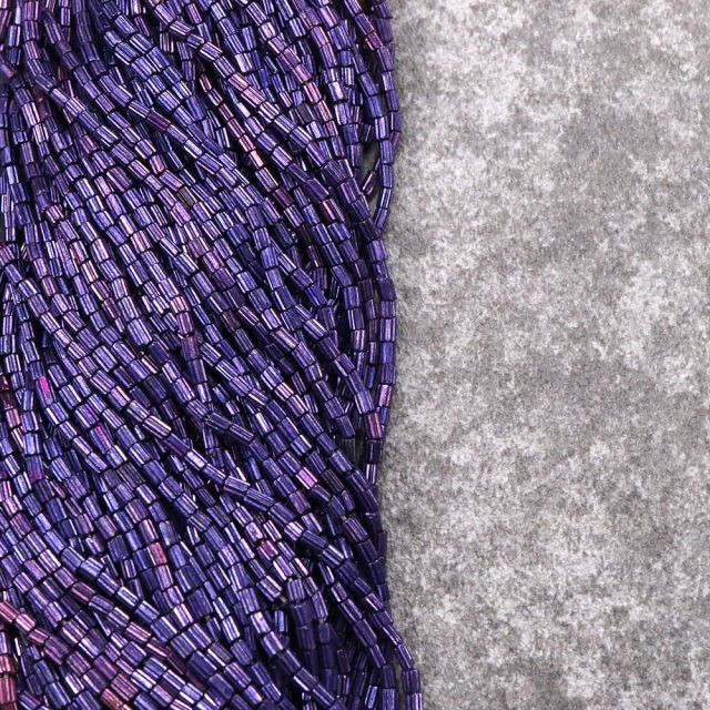 糸通しフランスヴィンテージシードビーズ パープル【長さ約56cm】