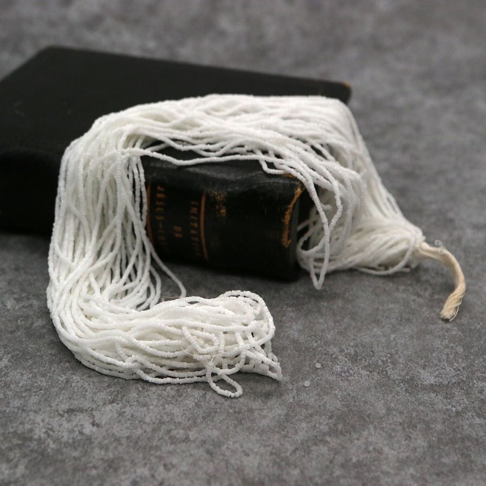 糸通しフランスヴィンテージシードビーズ ホワイト【長さ約49cm】
