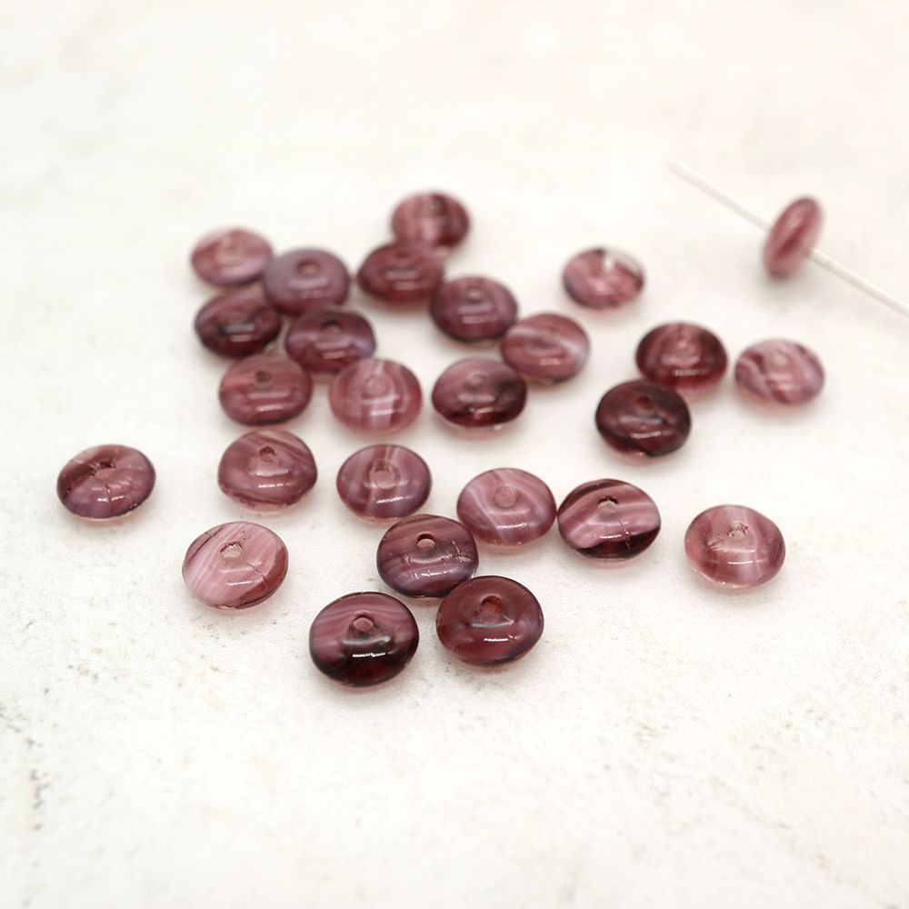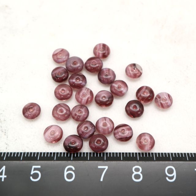 フランスヴィンテージビーズ ボタン パープルマーブル 約3x6mm【10個】