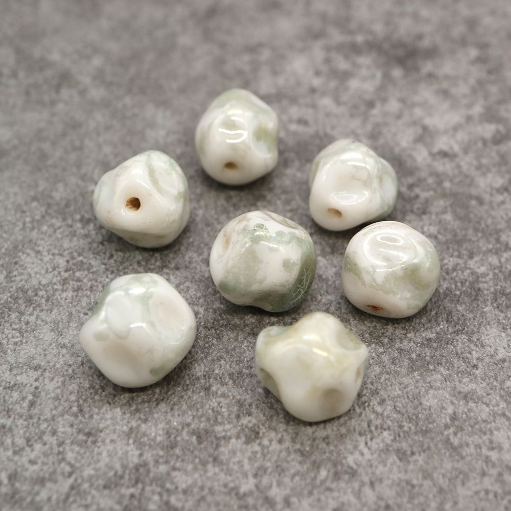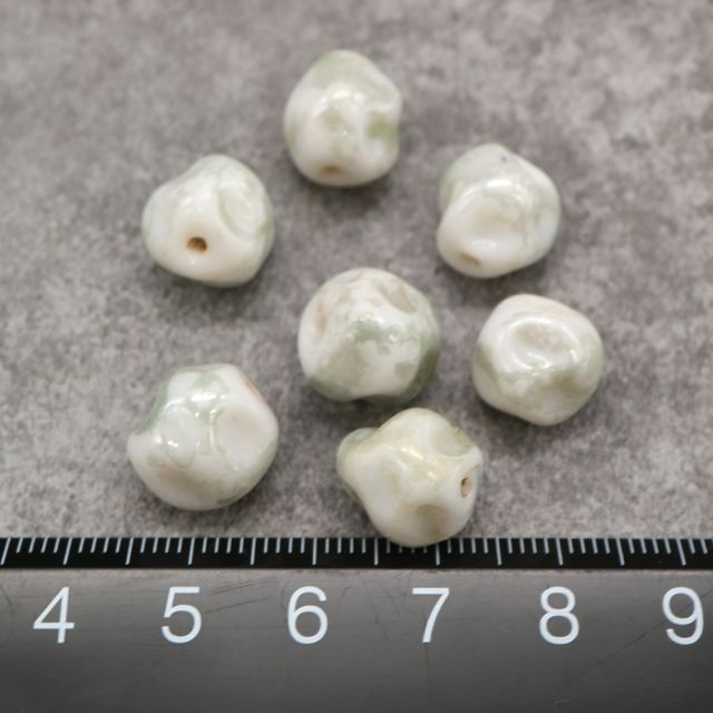 フランスヴィンテージビーズ 変形 ホワイト/グレー 約9-12.5x10.5mm【1個】